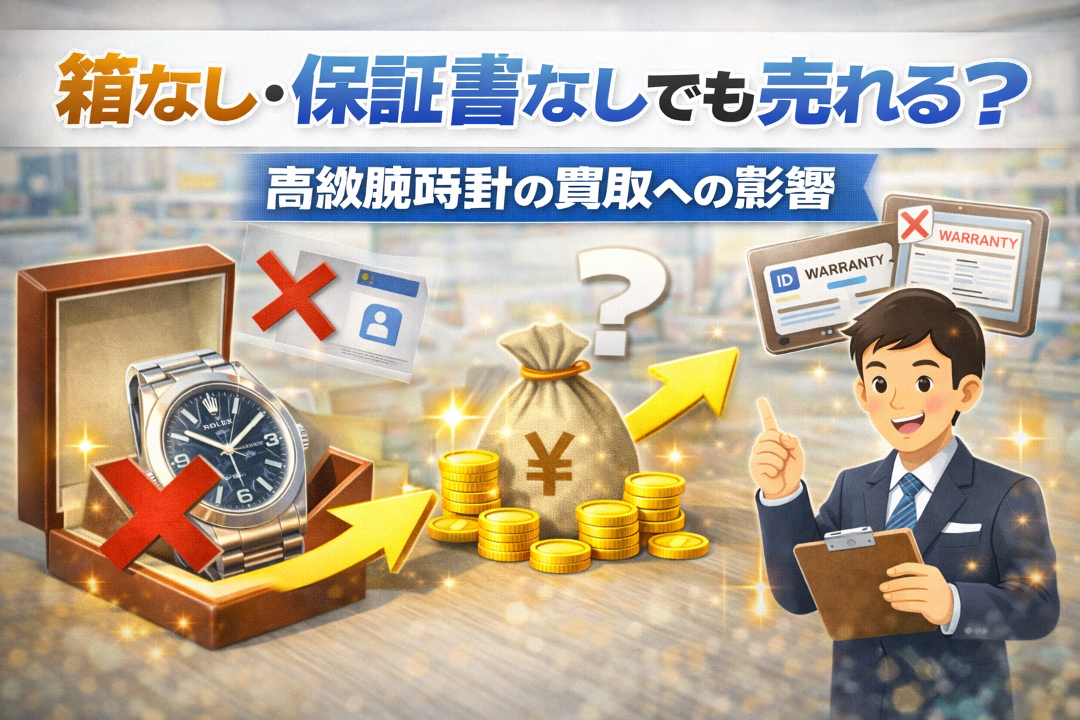 付属品(箱・保証書・布袋など)がある場合と比べ、ない場合は査定額に影響が出ることがあります。保管しているものはできるだけまとめて提出することが参考になります(参考:brandadorer.com)。